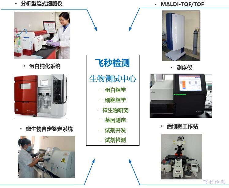 本測試中心有:分析性流式細胞儀、活細胞工作站、共聚焦顯微鏡、MALDI-TOF/TOF 質譜儀、Edman蛋白/多肽測序儀 、蛋白純化系統、毛細管電泳、定量PCR等設備。本中心可以開展如下檢測分析實驗: