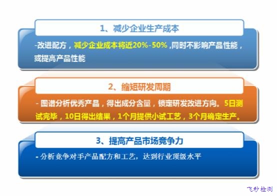 在開發新產品過程中,借助已有經驗的產品來提供開發方向是有效的方法。對一些技術難度較高的合成項目,開發工藝需要不斷的調整與測試,有相關深厚專業理論背景和技術開發應用經驗的團隊,對開發結果能進行即時檢測分析,快速調整解決方案,從而成功率較高,時間較短的開發出市場適用的新產品,飛秒檢測專業提供配方開發項目所需要的各種流程對接服務