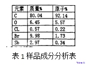 為了明確樣品中包含的元素及比例,測試了EDS能譜,含量分 析結(jié)果列于表1中。由圖1及表1可看出,樣品中含有鹵素“溴”,這 顯然與阻燃劑有關(guān);而Sb磐然是無機(jī)阻燃劑及增效劑“三氧化=銻”中的銻元素.