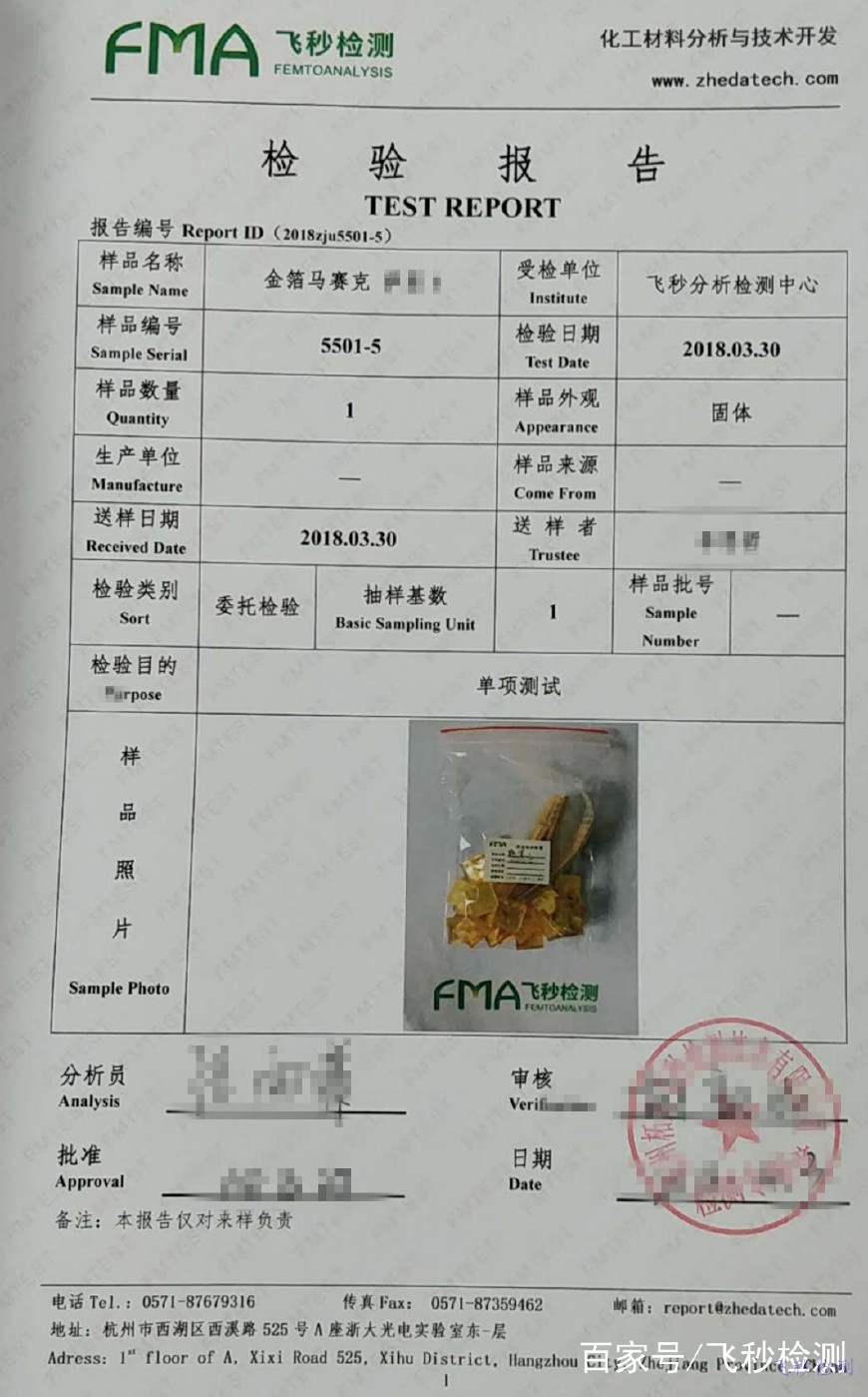 飛秒檢測分析鍍金馬賽克成分和配方