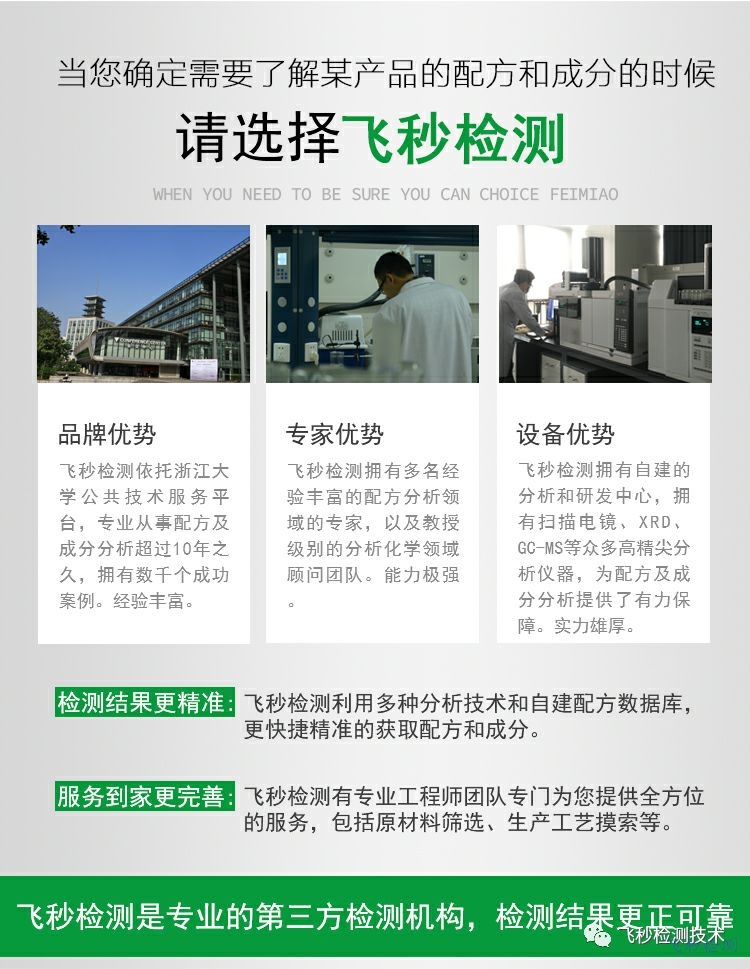 飛秒檢測依托大學為測試平臺,擁有多種分析測試手段,積累了深厚的化工產品剖析經驗,通過專業、可靠、綜合性的分離和檢測手段對未知物進行定性鑒定與定量分析,為科研及生產中調整配方、新產品研發、改進生產工藝提供科學依據。